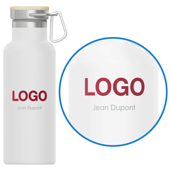 La gourde Traveler est dotée d'une technologie d'isolation à double paroi sous vide, conçue pour maintenir la température de votre boisson plus longtemps. Nous pouvons imprimer votre logo en sérigraphie ou en gravure laser sur la grande surface sur le corps du produit, et nous pouvons également imprimer le logo en sérigraphie sur l'élégant couvercle en bambou. La gourde Traveler dispose également d'une boucle de transport très pratique pour que vous puissiez l'emporter partout avec vous.